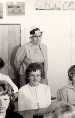 - LB: "Ja, glemmer aldri frøken Moe - hun var en levende legende! Vi hadde henne i tegning/farging, og STAKKARS DEN som tullet og sølte med vann på andre elever borte ved vasken:-) Hun kunne skjelle på elever som bråkte med en myndighet som fikk den "tøffeste" til å bli spak, for så i neste øyeblikk å snu seg rundt og rose tegningen til andre elever med stemme som en silkemyk katt:-)) - Husker også godt avskjedsdagen hennes! Jeg hadde vevd en liten bordløper til henne som i ettertid helst må ha sett ut som et "Røde Kors"- banner, hehe... Men hun takket overstrømmende og oppriktig, faktisk, og sa at hun ville mye heller ha noe hjemmelaget enn f.eks.en eske konfekt:-) Frøken Moe SÅ oss, hver enkelt."