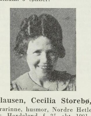 Cecilia Maria Nathalia Storebø Clausen (fødd 25. oktober 1901 i Austevoll, død 8. august 1993) var utdanna lærar frå Volda lærarskule i 1927. Ho gjekk og på Garnes handarbeidsskule, gjennomførte handarbeidskurs ved Nordhordland ungdomsskule og gjekk lærarinnekurset ved Statens kvinnelige industriskole i Oslo. Vidare tok ho kurs i røystebruk, og reiste til Nääs i Sverige og gjennomførte kurs i gymnastikk og pappsløyd.