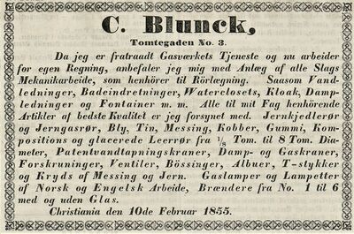 - C. Blunck i folketelling 1870 for Kristiania kjøpstad fra Digitalarkivet.