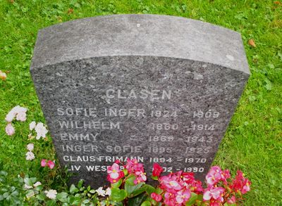 Claus Frimann Clasen er gravlagt i familiegrav på Ullern kirkegård i Oslo.