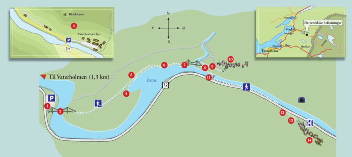 De verdalske befestninger i Verdal kommune kan oppleves via en spennende festningsløype gjennom historisk landskap med brusende elvestryk, frodig vegetasjon og steile fjellvegger. Løypen starter ved en av de avmerkede parkeringsplassene og har en varighet på ca. tre timer i vanlig gange om begge festningsgalleriene skal besøkes og oppleves.