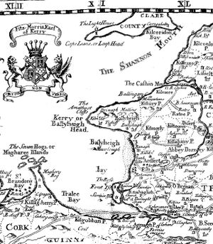 - ↑ https://www.tcd.ie/library/manuscripts/blog/2015/02/the-golden-lion-and-its-silver-swag-a-kerry-tale-of-adventure/ Pue’s Occurrences, June 1731, reports ‘about 200 men’ were involved in the raid. Shelf mark: IN.18.42. Pue’s Occurrences, June 1731, Coláiste na Tríonóide, Baile Átha Cliath, Trinity College Library, Dublin, i Trinity College Dublin, 2015: The Golden Lion and its silver swag: a Kerry tale of adventure.