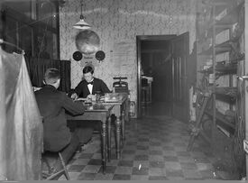 - Kvinnelige arbeidere i produksjonslokale før flytting til anlegget i Christian Krohgs gate.Foto: Marie Gleditsch/Oslo Museum (1898).