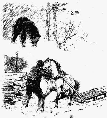 | Papa selde all skogen til uthogstr til eit visst mål; dei kom ti um tvo tusen dalar - det var so fæl skog han hadde. Men der vart so mykje klabb med den handelen. Kontrakti vilde dei setje upp heime hjå seg, so skulde papa skrive under når han kom til byen. I mellombil var ein merkjar innum til han: «Du må reise ti byn i fljugande sta' å likso fort nott som dag, å glåpe vel, fyrr du skrivar undi», sa merkjaren, «hellis kjem'e du ti trege de», sa han. Då hadde dei skrive so, at det var papa som hadde åbersten på alt dei sette seg for og bar upp, dei som dreiv ut skogjen; han tenkte ymist han likso godt hadde mått gjevi dei skogen for inkje. Dei vilde retta på det, sa dei. Men han tok ut med same tak. Han tala so harmt um dei handlarane, papa. | ||