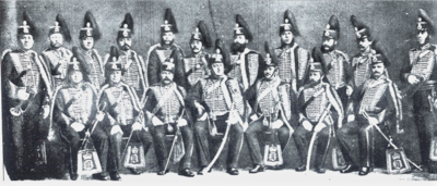 Under den store bybrannen i Drammen 1866, hvor 3988 eiendommer ble utbrent på Bragernes, inkludert Bragernes kirke, fra Waagardsløkken til Brakerøya og mer enn 5000 ble hjemløse, brant også korpsets ridehus fra 1856. Også korpset papirer helt fra 1773 gikk tapt, og dette mefører at mye kunnskap om virksomheten er borte. Men historiene om overdådige selskaper og staselige, kostbare uniformer som overskilte alle andre ved ulike ball har overlevd.