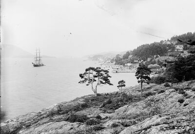 Utsikt fra Drøbak og nordover, med Håøya til venstre