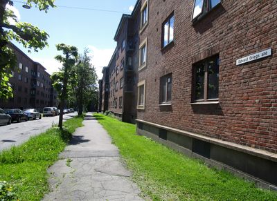 I nedre del går gata mellom Søndre Åsen-kvartalene 5 og 6. Ovenfor Haarklous plass er det boligblokker fra rundt 1950, tilhørende OBOS-borettslaget Søndre Åsen.