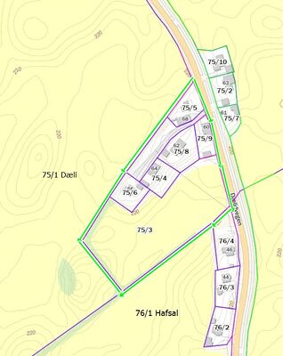 Eiendommen ble fradelt Dæli (75/1) ved skylddelingsforretning[1] 28.9.1979. Hjemmel: Bjørn Kristian Busterud. Areal 602 m2.