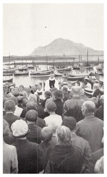 Gudstjeneste ved havet. Eivind Berggrav forretter på Blix-dagen i Gildeskål 12. juli 1936