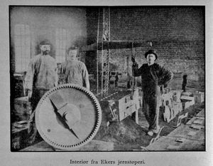 - ↑ Ifølge Johnsen (s.233) skjedde dette i 1900, men Andreas Hansen fikk ikke skjøte på eiendommen før 2/7-1901. Først 11/7-1904 ble Ekers Jernstøberi registrert i sorenskriverens firmaregister (registreringsprotokoll III-3, fol.26)