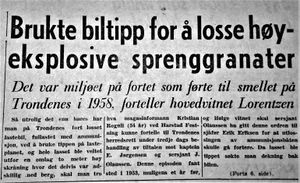 - Riksarkivet: «Ukesrapport for Minekommandoens pulje 2 i tida 31/8 – 6/9 1958», Trondenes 9. september 1958