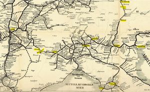 Paa Veien fra Suez til Cairo passerer man igjennem flade og tildels særdeles velopdyrkede Strækninger, - det er ’’Gosen’’; paa Jernbanestationerne kjøbte jeg Oranger og Granatæbler; disse sidste ere der overmaade saftrige og velsmagende og kunne ei sammenlignes med dem, man undertiden kan faae kjøbt i Christiania. Cairo er et saare interessant Sted. Man har der fastens al Slags Frugt frodigt voxende. Orangetræerne bugnede af moden Frugt; Roser og andre Blomster saaes i Haverne, skjønt der nu er Vintertid. Palmen er hyppig der, - hele store Skove; dog er det alene Daddelpalmen – Foenix datifera - , som sees. Paa mine Toure ud over landet omkring Cairo afgave Palmelunderne et deiligt Skue. Ude ved Memphis fandtes de især i Mængde.