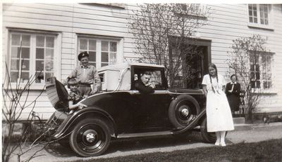 Biletet av denne bilen er å sjå på eit foto frå Vigmostad prestegard 1932. I studentdagane hadde han ein Ford Troadster 1926-27. På Herefoss prestegard i 1933 ein Citroën 1933 modell. Noko seinare ein Opel Super Six som han hadde då han kom til Bø prestegard i 1936. I 1939 vart denne erstatta med ein Ford V8 de luxe 1938 modell, kjøpt ny, men den vart konfiskert under krigen. Etter krigen vart det ny Ford, ein 1946 modell.