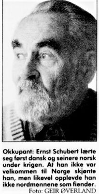 Ernst Schubert (leveår ukjent, men han var 77 år i 1995) var artillerist under 269. Infanterie-Division i Wehrmacht. Han fotograferte under den tyske okkupasjonen i Norge. I 1995 besøkte han Norge som gjest hos Arquebus krigshistorisk museum, sammen med den britiske veteranen Geoffrey Hildick.
