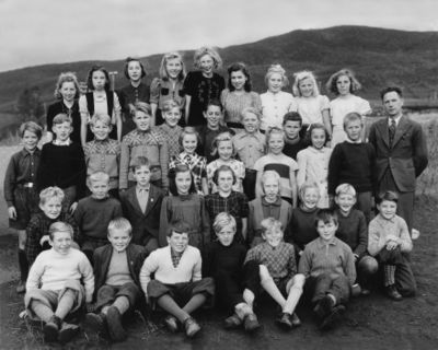 - Tredje rekke fra venstre: Lærer Otilie Isaksen (Tella) - Oddrun Hansen - Jorunn Solsvik - Margit Solsvik - Anne Marie Solsvik - Vally Stoltenberg - Aud Bergersen - Aud Rustad - Sofie Bjørkholdt.