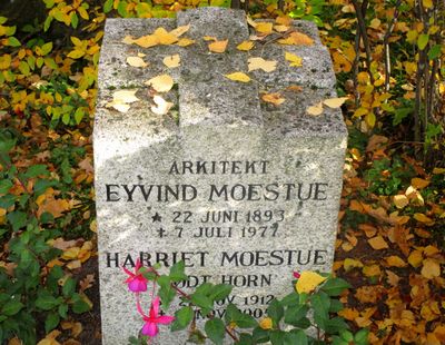 Eyvind Moestue er gravlagt på Vestre gravlund i Oslo sammen med sin kone og sin mor. Tittelen Arkitekt er benyttet på gravminnet.