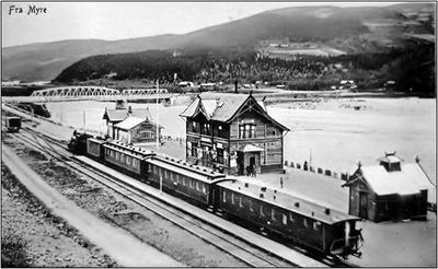 Fåvang stasjon i 1896, da den het Myre. I 1921 fikk den navnet Fåvang.