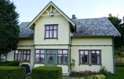 Valenheimen, familieboligen i Valevåg, oppført i 1903 i enkel sveitserstil på en høyde med utsikt mot vest.