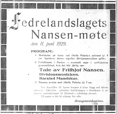 - Fridtjof Nansen i Harstad 1929 - om Fedrelandslagets folkemøte