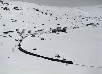 Oversiktsbilde av Finse stasjon, tatt i retning Geilo.