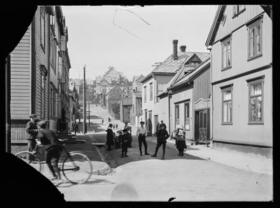 Fiskergata sett fra Mellomveien i mellomkrigstida.