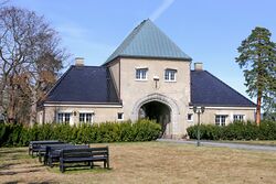 | 10, 11 | Opprinnelig innkjøringsportal og portnerbolig tilhørende villaeiendommen Lagåsen, oppført i 1919 etter tegninger av Thv. Astrup og Ivar Næss. I dag en del av Lagåsen boligsameie. | |