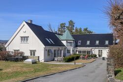 Villaen «Karistua», boligen til Halfdan Koht (1873–1965), tegnet av Arnstein Arneberg, oppført 1910. Etter Kohts død bodde hans datter Åse Gruda Skard og ektemannen Sigmund Skard her, etter deres død solgt ut av familien. |