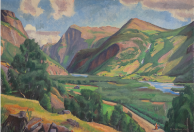 Maleriet «Juliformiddag i Bøverdalen, Flåklypa» av Gunnar Wefring, 1949.