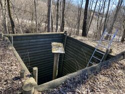 En av de syv fangstgropene langs stien. Opprinnelig ville disse ha vært både dypere og brattere enn hva de fremstår som i dag. Foto: Rudi A. Mikalsen/Samediggi.