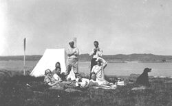 Transport av molybden med taugbane frå toppen av gruva ned til Bandak. Molybdenen vart frakta vidare med båt.