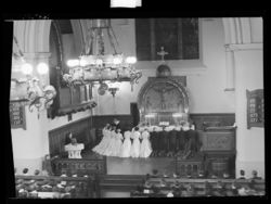 Helge Fæhn ved lansering av boka Gudstjenesteliv i den norske kirke. Fra Samhold-Velgeren, tirsdag 15. mars 1994.