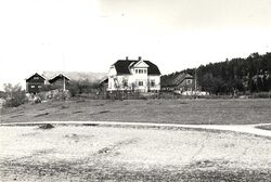 Holm i 1961. Gården er nå fullstendig utsletta fra landskapet av senere bebyggelse. Foto: Truls Teigen