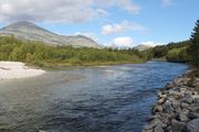 Et tog i retning Åndalsnes på Stuguflåten bru like øst for kommunegrensen mellom Lesja og Rauma. Foto: Leif-Harald Ruud (2021)