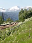 Raumabanen med Dønttinden, sett fra Brude Foto: Halvard Hatlen Raumabanen er en 114,2 kilometer lang jernbanestrekning som danner en sidebane fra Dovrebanen. Den ble tatt i bruk mellom Dombås og Bjorli i 1921, og hele banen ble åpnet av kong Haakon i november 1924. Banen går fra Dombås i Innlandet fylke ned til Åndalsnes i Møre og Romsdal fylke. Jernbanen passerer under Trollveggen og Romsdalshorn. Ved Verma krysser banen dalen over Kylling bru. Banen har 32 bruer og seks tunneler. Den er ikke elektrifisert, og det kjøres med dieselmateriell.