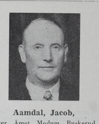 Jacob Aamland Foto: Norske skolefolk (1952) Jacob Georg Beck Aamdal (født 25. juni 1891 på Lista, død 28. februar 1971) var lærer og skolestyrer. Lengst var han på Modum. Aamdal, som ble tildelt Kongens fortjenstmedalje, var også kordirigent og ga ut en del korsanger. Han stifta dessuten Strand Småbrukarlag.