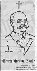 Elias Sunde (født 2. oktober 1851 i Flekkefjord, død 2. juli 1910) var grosserer, politiker (V) og embetsmann, de siste årene av sitt liv generaldirektør i NSB. Elias Sunde satt i formannskapet i Kristiania fra 1888, og var hovedstadens ordfører 1895-97. Han tok over etter Venstres første ordfører i Kristiania, Fredrik Stang Lund, som høsten 1895 ble statsråd. Som ordfører var det Sunde som holdt velkomsttalen til Fridtjof Nansen og mannskapet på Fram, da den første Fram-ekspedisjonen kom tilbake til hovedstaden 9. september 1896. Les mer …