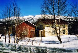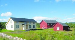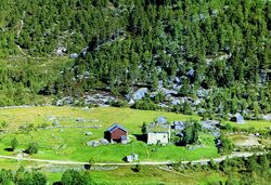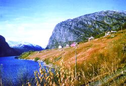 Holen 1965. Myri nærast, Der uppe attom. Foto: Fjellanger-Widerøe