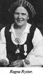 Ragna Rytter. Foto frå boka Godtemplarordenen i Norge 1927-1977 (1976). Ragna Rytter (født 26. juli 1885 i Verdal, død 7. januar 1972 i Melhus) var folkehøgskulelærar, diktar og fråhaldskvinne. Ho ga ut fleire diktsamlingar, dei fleste på landsmål, og var dessutan ei av opphavskvinnene til trønderbunaden.