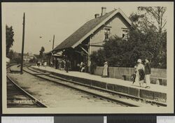Oppegård stasjon i 1920-åra. Foto: Ukjent / Nasjonalbiblioteket