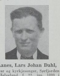 Lars Johan Dahl Aanes Foto: Norske skolefolk (1952) Lars (Johan Dahl) Aanes (født 22. januar 1899 i Ånes i Rødøy, død 2. mars 1993 på Nesna) var lærer og kirkesanger i Sørfjorden i Rødøy. I 1969 ble han tildelt Kongens fortjenstmedalje.