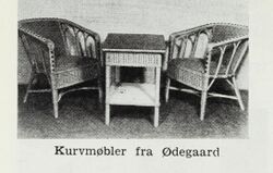 Møbler fra Jacob Johnsen Trevarefabrikk. Foto: Ukjent / Sætherskar, Johs. (red.), Det Norske Næringsliv 4, Telemark Fylkesleksikon, Bergen, 1949.