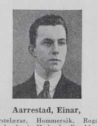 Einar Aarrestad Foto: Norske skolefolk (1952) Einar Aarrestad (fødd 26. juni 1902 i Hetland kommune ved Stavanger, død 31. mai 1989) var lærar, klokkar og aktiv fråhaldsmann.