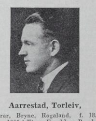 Torleiv Årrestad Foto: Norske skolefolk (1952) Torleiv Årrestad (fødd 18. desember 1905 på Årrestad i Time, død 30. september 1998) var lærar. Han skreiv seg fyrst for Aarrestad, men bytta til Årrestad, noko som òg står på gravminnet på Undheim kyrkjegard.
