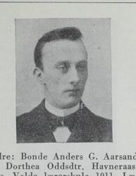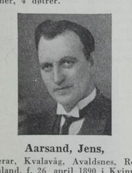 Odd Aarsand Foto: Norske skolefolk (1952) Odd Aarsand (fødd 28. mars 1888 på Årsand i Kvinnherad, død 24. juni 1971) var lærar og kyrkjesongar på Avaldsnes. Han var òg ordførar i bygda. Ei tid var han dessutan postopnar, og han sat som formann i ungdomslag og lærarlag. Les mer …