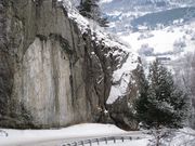 Jutulporten i Prestberget (Jutulberget) i Vågå, rett opp frå bygdesenteret Vågåmo. Staden er kjend frå eventyret om Jutulen og Johannes Blessom (Asbjørnsen og Moe). Foto:Hans P. Hosar 2013.