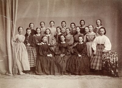En klasse ved Fru Autenrieths pikeskole omkring 1862.