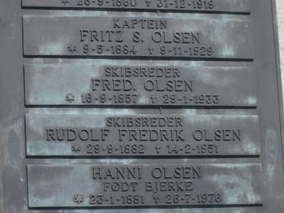 - Nygaard, Knut M.: Fred. Olsen - 1857–1933 i Norsk biografisk leksikon på snl.no. Hentet 26. juli 2022 fra http://nbl.snl.no/Fred._Olsen_-_1857%E2%80%931933