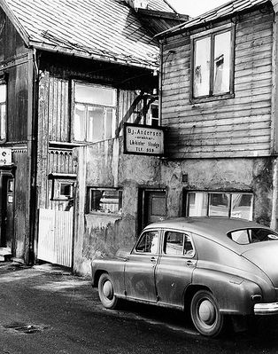 Snekker Bjarne Andersen, med spesialitet likkister, hadde både verksted og bolig her i 1957/82, bare verksted i 1986.