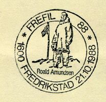 Den lokale kunstneren Johnny Sommer ,tegnet stempel og en helsak etter en idé av Bjørn Myhre. Tema for utstillingens stempel og produkter var antarktis og Roald Amundsen.