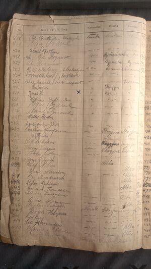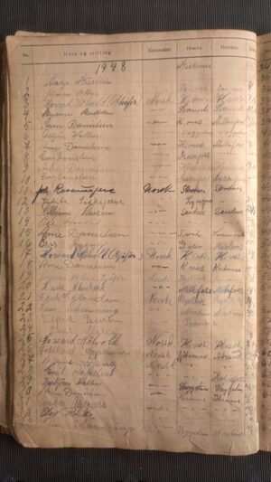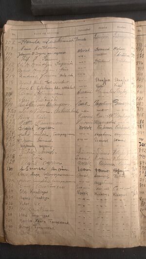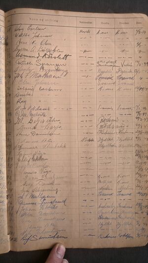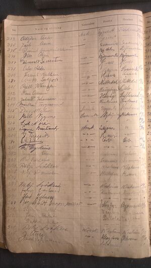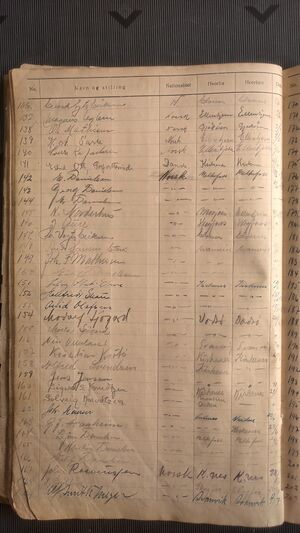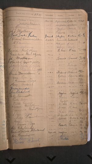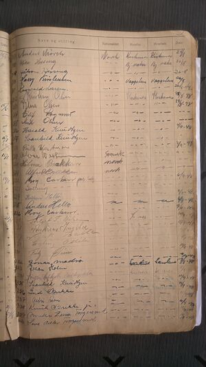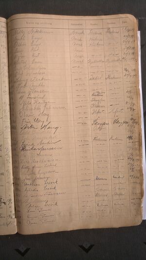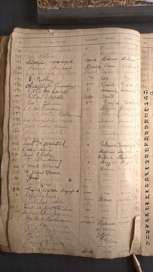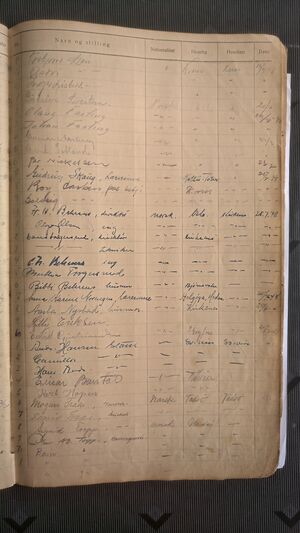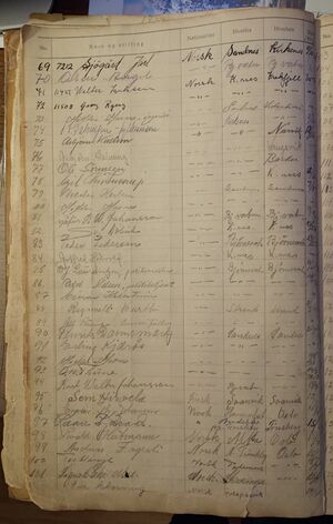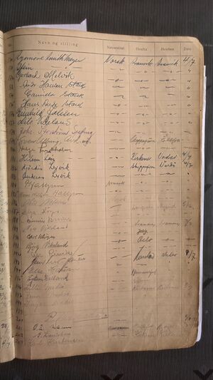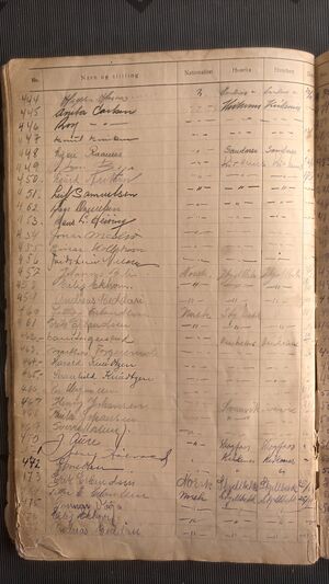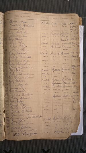 Nr 538 Ankomst: 5. juli 1951 Navn: Olaf Dahl født: 31.7.1878 i Sør-Varanger Stilling: Pensjonist Nasjonalitet: Norsk Hjemsted: Ås Siste oppholdssted: Strand Avreise: Neste oppholdssted: